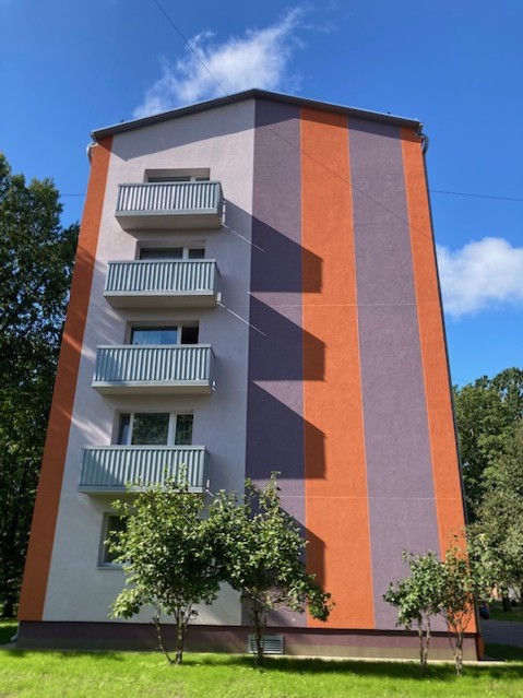 Mājas renovācija īstenota atbalsta programmā daudzdzīvokļu māju energoefektivitātes uzlabošanai, kas tiek īstenota Eiropas Savienības (ES) Atjaunošanas un noturības mehānisma (turpmāk – ANM) ietvarā.